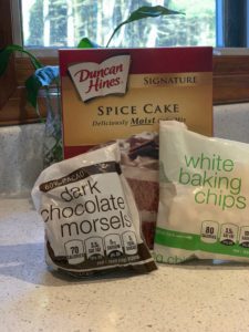 Another variation on the yellow cake mix with chocolate chips. This time it’s spice cake mix with both chocolate and white chocolate chips (leftover from earlier cookie making). I used the ice cream scoop and got 21 cookies. They were soft and chewy. #sogood. Served them at my family Christmas party. We had lots of food! There were only a few cookies left over!