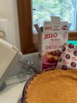 This cheesecake was made from a boxed kit and took about five minutes! But the flavor was very good. Not as cheese-y as homemade, but it will do for our whipped cream taste-test.