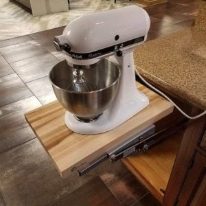 Look for shelves you can add to your cabinets that will benefit your appliance storage or hide a small TV! Check out these two items on Amazon and search around for other cool storage units.