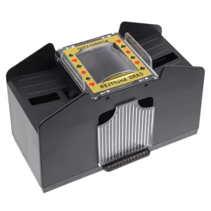 Battery-operated card shuffler. We love this card shuffler! It’s noisy, but when playing a game of UNO, no need to be quiet!