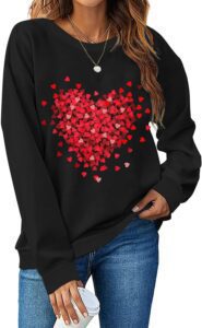 DOLKFU Valentines Day Shirts For Women Fashion Love Heart Graphic Pullover Loose Long Sleeve Casual Sweatshirts