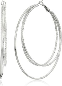 Guess Smooth and Textured Wire Silver Hoop Earrings