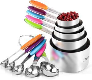 Measuring Cups : U-Taste 18/8 Stainless Steel Measuring Cups and Spoons Set of 10 Piece, Upgraded Thickness Handle (Multicolors) Amazon affiliate link https://amzn.to/49wMr2I