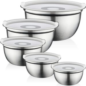 FineDine Stainless Steel Mixing Bowls Set with Lids, Home Kitchen Cooking Essentials Household Must Haves for Baking, 5 Pieces Amazon affiliate link https://amzn.to/3UQRkPE