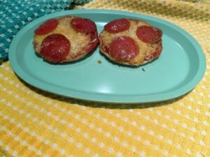 This is the type of recipe that’s great for when you don’t have time to prepare meat, potatoes, and vegetable meals. Total time to make an English muffin pizza from construction to taking out of toaster oven is a little over 10 minutes! It’s also great for a late night snack, just like I did the other night!