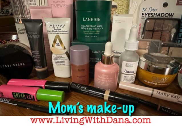 My mother is about 21 years older than me and we use different types of make-up and skin products. Today I am going to show you the products in my mother’s make-up bag because, well, she was more organized than me today! LOL. Soon I will have a post showing what’s in my make-up bag.