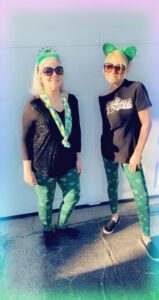 This is my mother and I a few years ago modeling our dollar store green leggings. And we each had a St. Patrick’s themed headband. We are going to wear these leggings again this year.