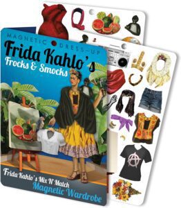 The Unemployed Philosophers Guild Frida Kahlo Frocks and Smocks Magnetic Dress Up Doll Play Set Amazon affiliate link