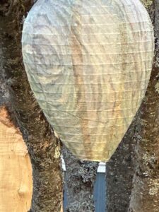 Here is an important tip: Tie them securely! We have lost a few that blew away in windstorms. When we have warning and time, we do take them down before a storm so they don’t blow out of the trees or from under the eaves.