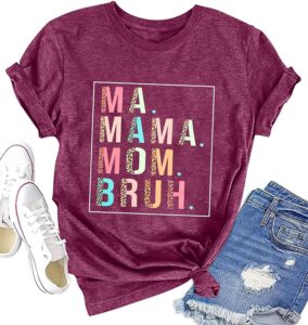 There are a lot of cute t-shirts out there. I think my mom will like this one! Amazon affiliate link: Mama Shirts Women Ma Mama Mom Bruh Letter Print Shirt Colorful Mama Life Casual Mom Short Sleeve Tee Tops https://amzn.to/3Jilvby