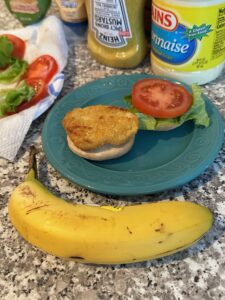 The end result was tasty. We opted to add lettuce and sliced tomatoes and then we had a variety of dressings so each person could have their favorite. I had mayonnaise as did my dad. My mom used the dill mustard. I still haven’t tried that yet, but she loves it.