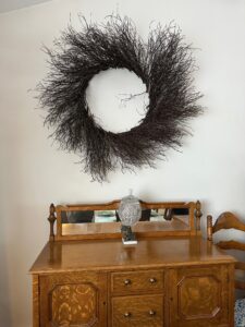 You can also see the giant-size twig wreath on the wall in the Easter decoration takedown reel. That wreath has been hanging on that wall for about 30 years! My mother wants to change to something different. She’s thinking maybe a super large clock or a grouping of artwork.