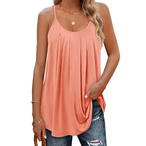 UVN Tank Tops for Women Pleat Spaghetti Strap Camisole Sleeveless