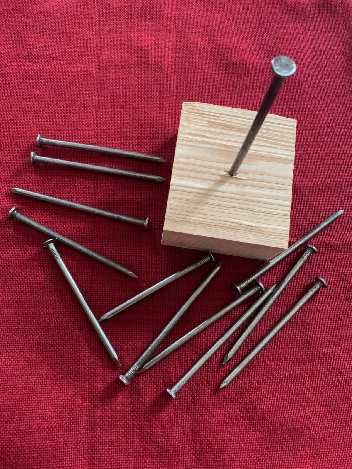 Does your dad like puzzles? Here’s a gift idea for the dad who has everything. Take a 4″ nail and pound it into a block of wood. Then try balancing 12 nails on the head of that nail in the block of wood! My dad is the one who showed me this puzzle so I know it’s dad approved.