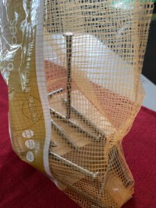 I’ve asked my dad to make me these puzzles over the years and given them away as gifts. Sometimes I even put the whole puzzle set in a recycled bag such as an empty sugar bag or something similar. The recipient wonders what is inside that sugar bag! Β It’s very unique. Another time I used an empty dry cat food bag. This picture shows the whole puzzle set in a mesh bag (I think it was potatoes). A brown paper lunch bag works good as a gift bag, too.