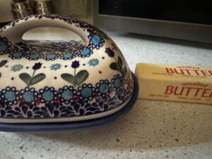 I soften the butter in the microwave just enough to make it easy to spread. I do not like trying to spread cold butter on bread.