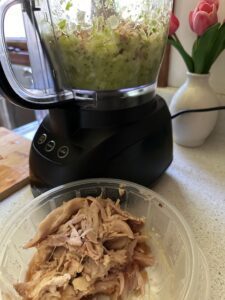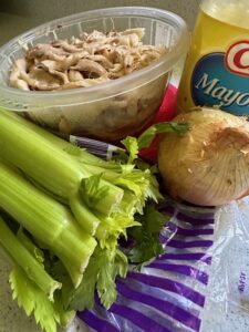 Sometimes when I buy chicken salad already made at the grocery store, the chicken is in large chunks which I don’t like. Β The chicken doesn’t have to be pulverized to mush, but the big chunks aren’t appetizing. Another reason I don’t like the store-bought chicken salad is that sometimes I bite into some gristle, yuck!