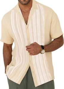 If subdued colors are more your thing, here’s a classy bowling shirt style shirt that does the trick! Visit the Beotyshow Store. Men’s Vintage Bowling Shirt Short Sleeve Button Down Hawaiian Summer Beach Casual Contrasting Panel Shirts. #Amazon #affiliate link https://amzn.to/3LvRXbr