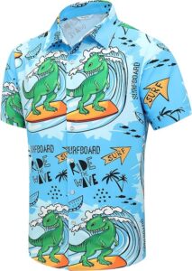 Dinosaurs and sharks are popular with the kids right now and how cool will they think you are if you wear this dinosaur Hawaiian style shirt?! Brand: Simmashah. Mens Hawaiian Shirt, Short Sleeves Button-Down Beach Clothing, Unisex. #Amazon #affiliate link https://amzn.to/3Wq7b85