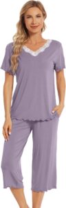 WiWi Viscose from Bamboo Pajamas Set for Women Summer Sleepwear Pjs Comfy Short Sleeve Tops Capri Pants Sets S-XXL.