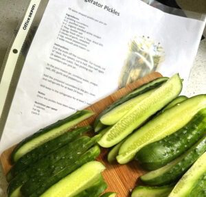 Read my earlier blog post about making these refrigerator pickles with family at camp a few years ago. https://livingwithdana.com/2024/04/recipe-refrigerator-pickles/