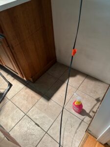 As soon as I pulled the refrigerator out of its spot in the kitchen — very snug but the back of the refrigerator is always about six inches away from the wall — the refrigerator started running, almost as if it was being released from all the cat hair and dust that had accumulated underneath it on its motor.