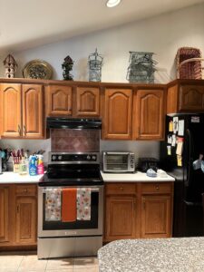 Basically, for both the stove and refrigerator, after pulling them out of their spots, I wiped down the exterior with a cleaning spray. The refrigerator was dusty on top. The hood over the stove was greasy. Which reminds me that I want to look for replacement hood screens and if they’re not too expensive, maybe instead of scrubbing and soaking the hood screens I can just replace them once a year.