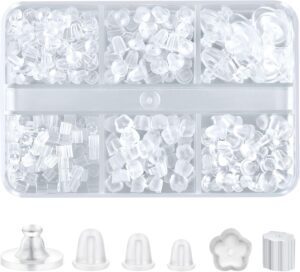 Reviews for the pull-through earrings say to secure them with the clear little plastic backing discs. Try these 6 Styles of Silicone Earring Backs; 600 Pieces.