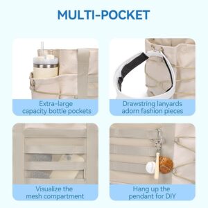 Drawstring Design: The open mesh design on the front makes it easy to organize and position the contents of the bag. You can also hang up your favorite accessories and DIY your own fashion. The side drawstring lanyard design can be worn with any outfit, making it perfect for carrying sports gear and everyday essentials.
