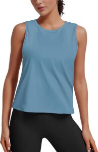 Look for a tank top that won’t gape at your armpits and fits snugly. AURUZA Ice Silk Workout Tank Tops for Women. Amazon affiliate ad https://amzn.to/4dG9CJj