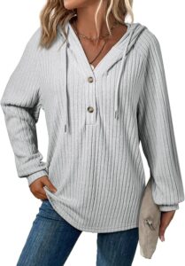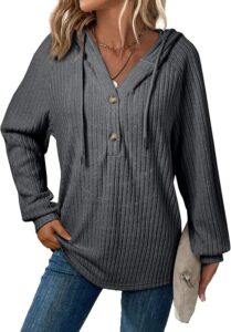 SHEWIN Women’s V-Neck Hooded Sweater in Lightweight Knit with Long