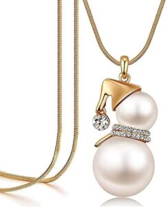 a d] Snowman Pendant Necklace with Imitation Pearl and Crystal on a Long Sweater Chain. Amazon creator ad link https://amzn.to/4hXdw3E