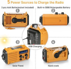 [a d] Emergency Radio with NOAA Weather Alert, Portable Solar Hand Crank AM/FM Radio for Survival, Rechargeable Battery-Powered Radio, USB Charger, Flashlight, Reading Lamp, for Home and Outdoors.