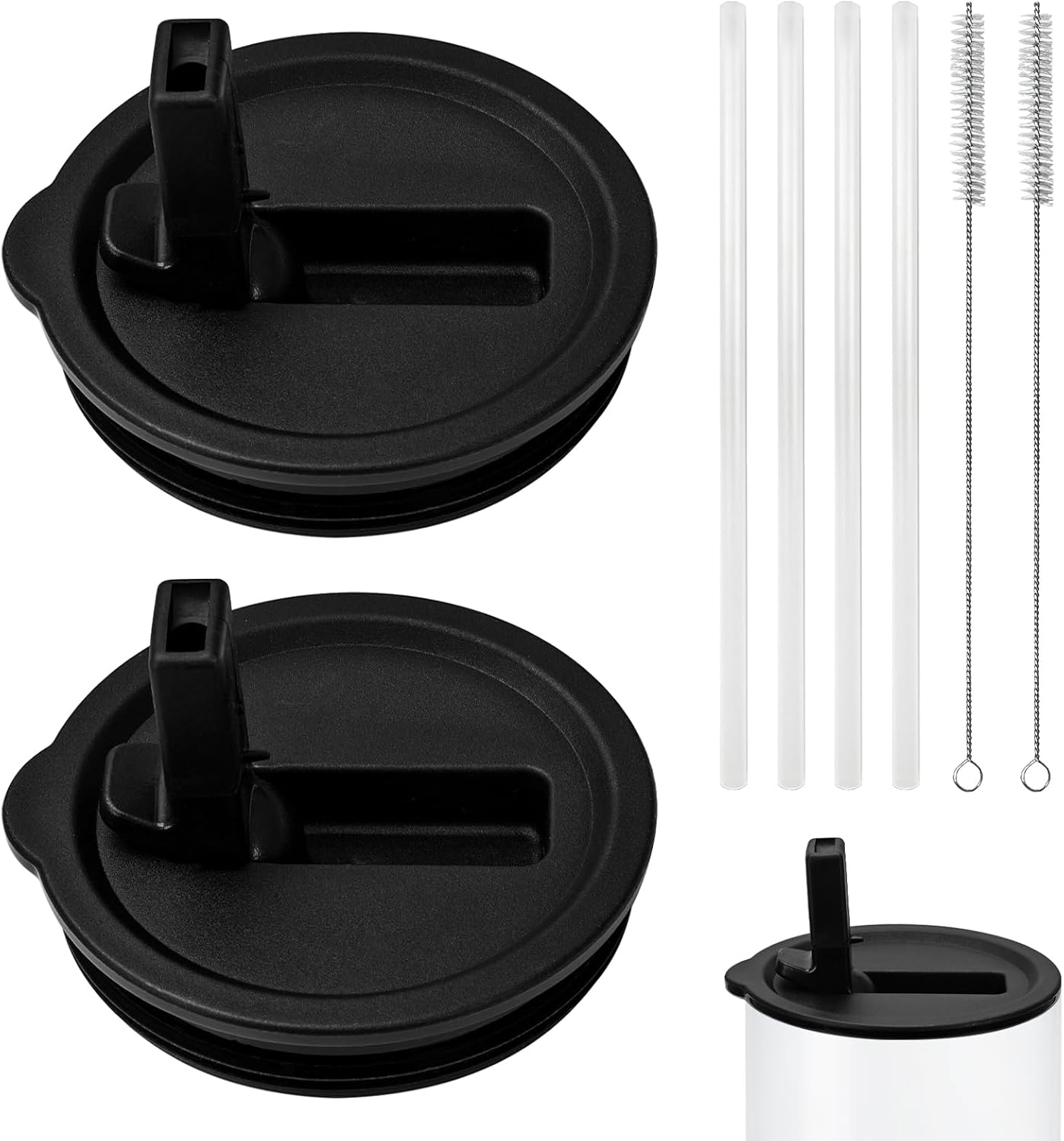 [a d] 20 oz Tumbler Straw Lid, Replacement Lids Compatible for YETI 20 oz Tumbler, 10/24 oz Mug,10 oz Lowball, Travel Spill Proof Cup Lids with Straw and Brush, BPA Free (Black 2).