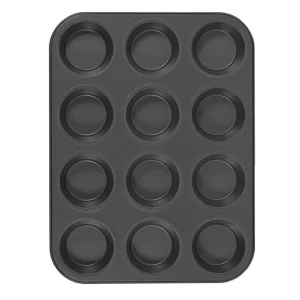 [a d] Mainstays 12 Cup Nonstick Muffin Pan, Cupcake Pan, 2.9″ Diameter cup, Gray. Less than $7. Buy two at this low price!