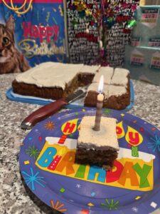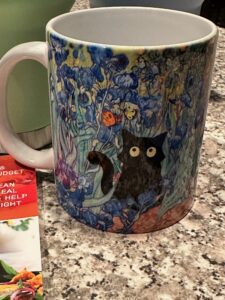 Here’s the coffee mug next to my cake and gifts this morning!