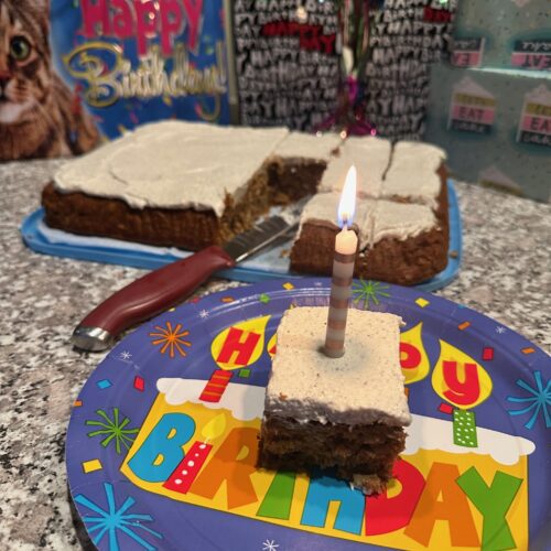 My mother made my a healthy carrot cake with cream cheese frosting that is delicious and moist and if I hadn’t told you it’s healthy, you can’t tell by eating it!