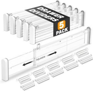 [a d] Expandable Drawer Dividers with Inserts – 2.36” High, Adjustable, set comes with 5 Long Dividers(12.6-22.8”) with 10 Inserts(3.9-7.1”), Clear. I like these because they can be used in any drawer that needs organizing! Be sure to measure the depth and width of your drawers first and order accordingly. Amazon creator ad link https://amzn.to/4cTMZC1