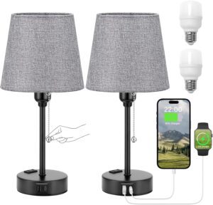 Acaxin Mini Gray Bedside Lamps, Set of 2 with 3 Color Modes, USB C+A Charging Port and AC Outlet, comes with light bulbs Amazon affiliate link https://amzn.to/3TvePN9