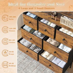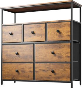 EnHomee 7-Drawer Dresser with 2 Open Wooden Shelves, Easy Assembly & Pull, Rustic Look. 12″ D x 32″ W x 38″ H. All drawers are made from thick fabric! Color options are available so scroll through the link. I chose Rustic Brown. Other sizes and products are available including headboards! Amazon creator ad link https://amzn.to/4jWtxI5