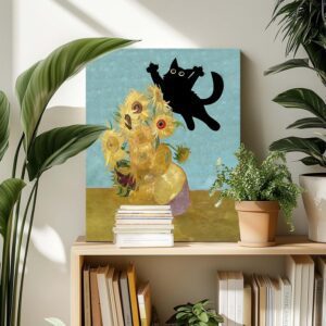 [a d] Five sizes! Funny Cat Canvas Wall Art Decor Framed Painting – Black Cat and Van Gogh Sunflowers Picture Poster Print, Kitten Artwork for Living Room, Office Decoration, Oil Painting. Amazon creator affiliate link https://amzn.to/3H1Sl2A