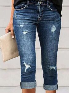 Women’s Front Button Pocket Elegant Commuting Cuffed Ripped Denim Jeans 2.1k+ sold