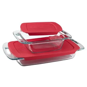 Pyrex Easy Grab 4-piece Glass Bakeware Set with Red Lids. Affiliate link https://walmrt.us/3IhSkYI