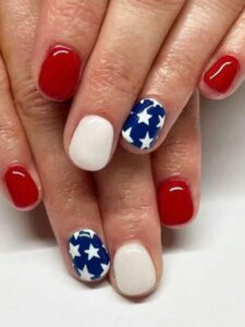 ๐Red, White & Blue Nails โ Chic stars & stripes in a short square shape.
