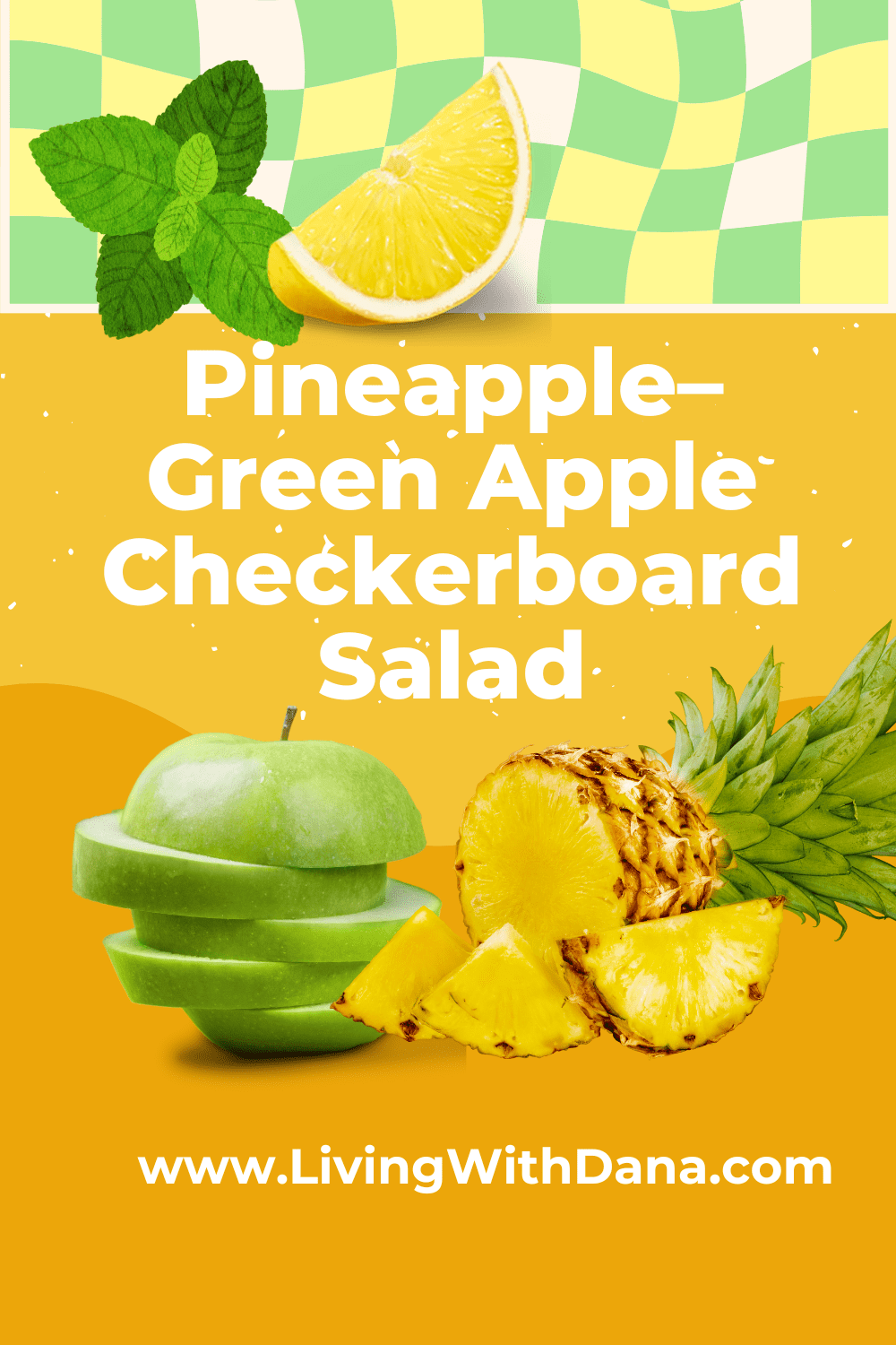 This PineappleâGreen Apple Checkerboard Salad is guaranteed to brighten up your table and your day. Itâs proof that sometimes the simplest ingredients, arranged with a little creativity, can make the biggest impact. xoxo đ â Dana