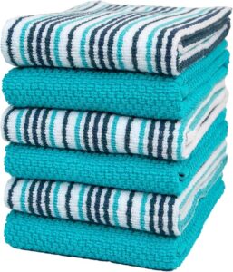Kitchen Towels 16”x 26” – 6 Pack, Cotton, Popcorn Stripe Design, with Hanging Loop. Amazon affiliate link https://amzn.to/46Bbqml Other color combinations are available. These are great for every day use in between using holiday or themed towels!