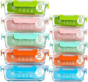 If you prefer glass: C CREST 10-Pack Glass Food Storage Containers (A Set of Five Colors), Meal Prep Containers with Lids for Kitchen, Home Use – Airtight Glass Lunch Boxes. Amazon creator ad link https://amzn.to/3EjiBEs