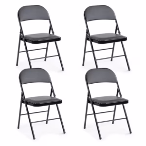 CONCETTA 4 Pack Folding Chairs – Indoor/Outdoor, Stackable with Padded Seat (Black) — keep a stack ready for overflow or for moving quickly from “dinner” to “game night.” Affiliate link: https://walmrt.us/3XpRHAx