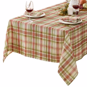 Plaid fall tablecloth (many sizes: rectangle or round) — this can work from early fall through Thanksgiving and give you a warm, layered feel that transitions into the winter holidays. Affiliate link: https://walmrt.us/4pkVXO3