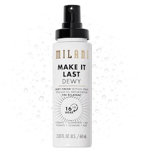 Milani Make It Dewy Setting Spray Amazon affiliate link https://amzn.to/4hNYAoR or NYC Dewy Finish Setting Spray Amazon affiliate link https://amzn.to/4oxnJqv Both lock in moisture and add a final mist of magic.